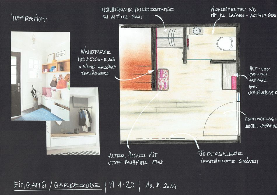 Es waren Einrichtungs-/ und architektonsiche Anpassungen nötig. Neuer Bodenbelag, Wandfarbe, Raumtrenner, Türen, etc. Was dabei heraus kam, sehen Sie selbst.