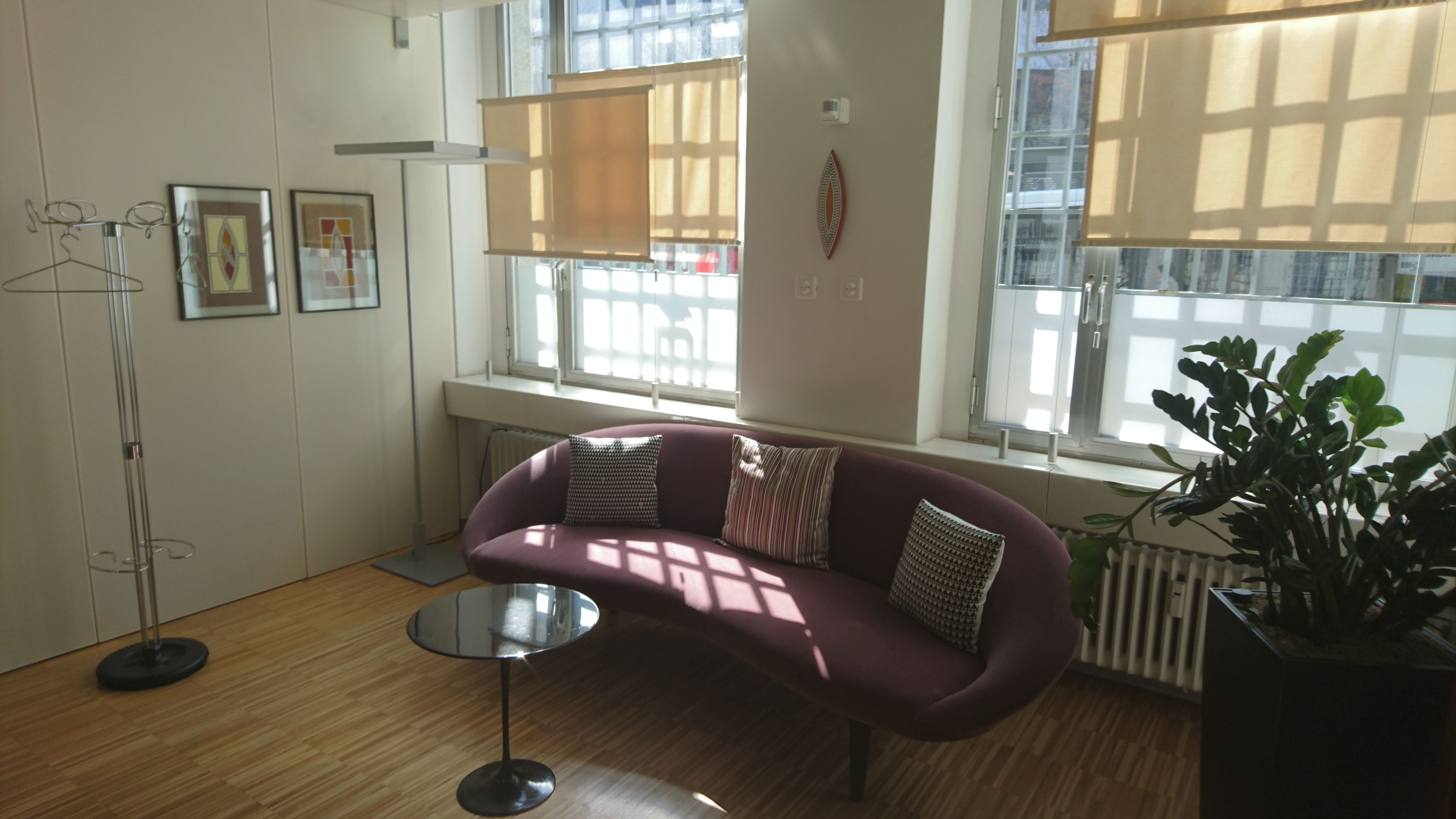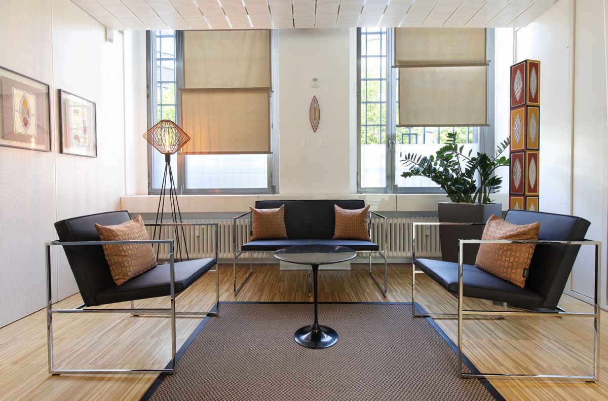 Dieser kleine Warteraum ist einem bestimmten Künstler der Region gewidmet. Die Einrichtung war in die Jahre gekommen, unpraktisch und mehr schlecht als recht aufeinander abgestimmt. Meinen Aufgabe war es, das Warten, wenn es dann mal vorkam, bequem und angenehm zu gestalten.
