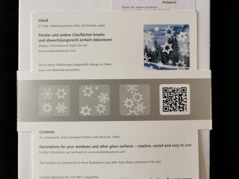 Hafttextil; Unterschiedlich grosse, klassische Sternformen, kombiniert mit filigranen Schneekristallen, verleihen dem Fenster eine stilvolle, winterlich-weihnächtliche Stimmung und erlauben eine spannende und abwechslungsreiche Gestaltung.